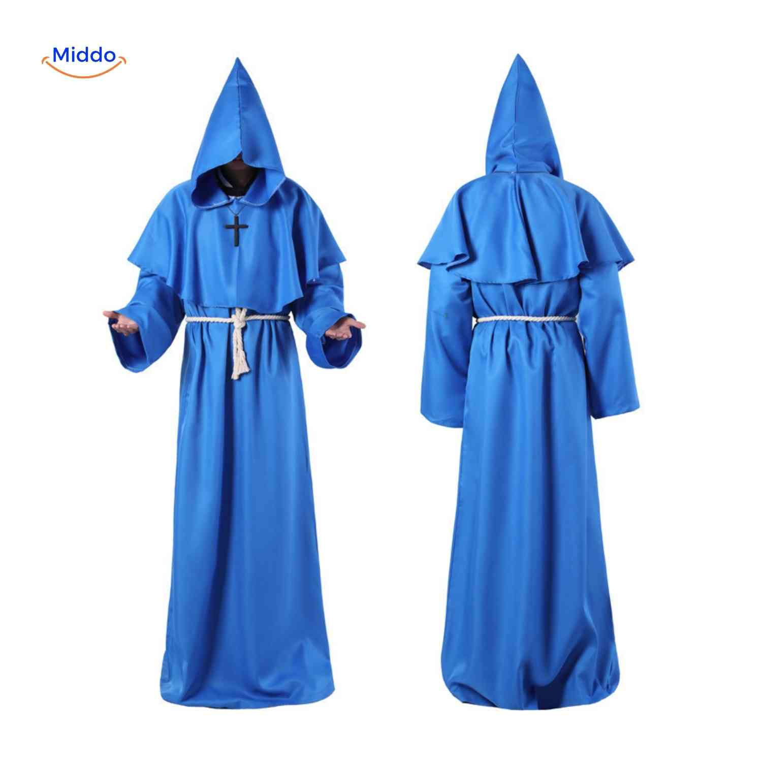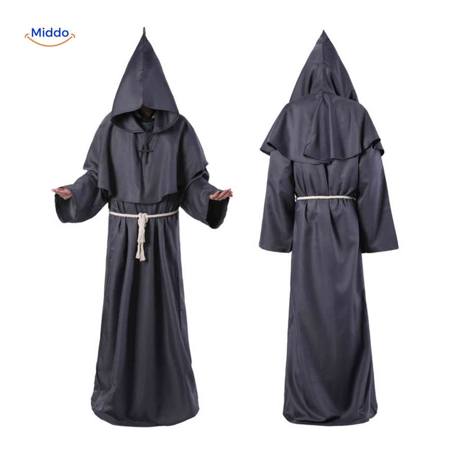 Η στολή Monkara εμπνέεται από τα κλασικά ρούχα που φορούσαν οι μοναχοί τον Μεσαίωνα. Τα φαρδιά μανίκια, το μήκος και η βαθιά κουκούλα δημιουργούν μια εντυπωσιακή εμφάνιση. Ιδανικό για πάρτι, cosplay ή ως εντυπωσιακό στοιχείο σε θεατρικές παραστάσεις ή επιδείξεις μόδας.