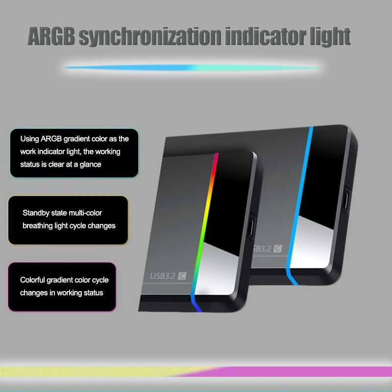 Disque dur externe portable - 250GB / 320GB / 500GB, Type-C & PD Fast, ARGB Light